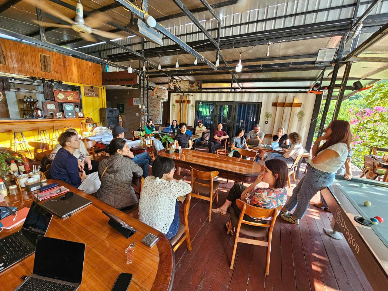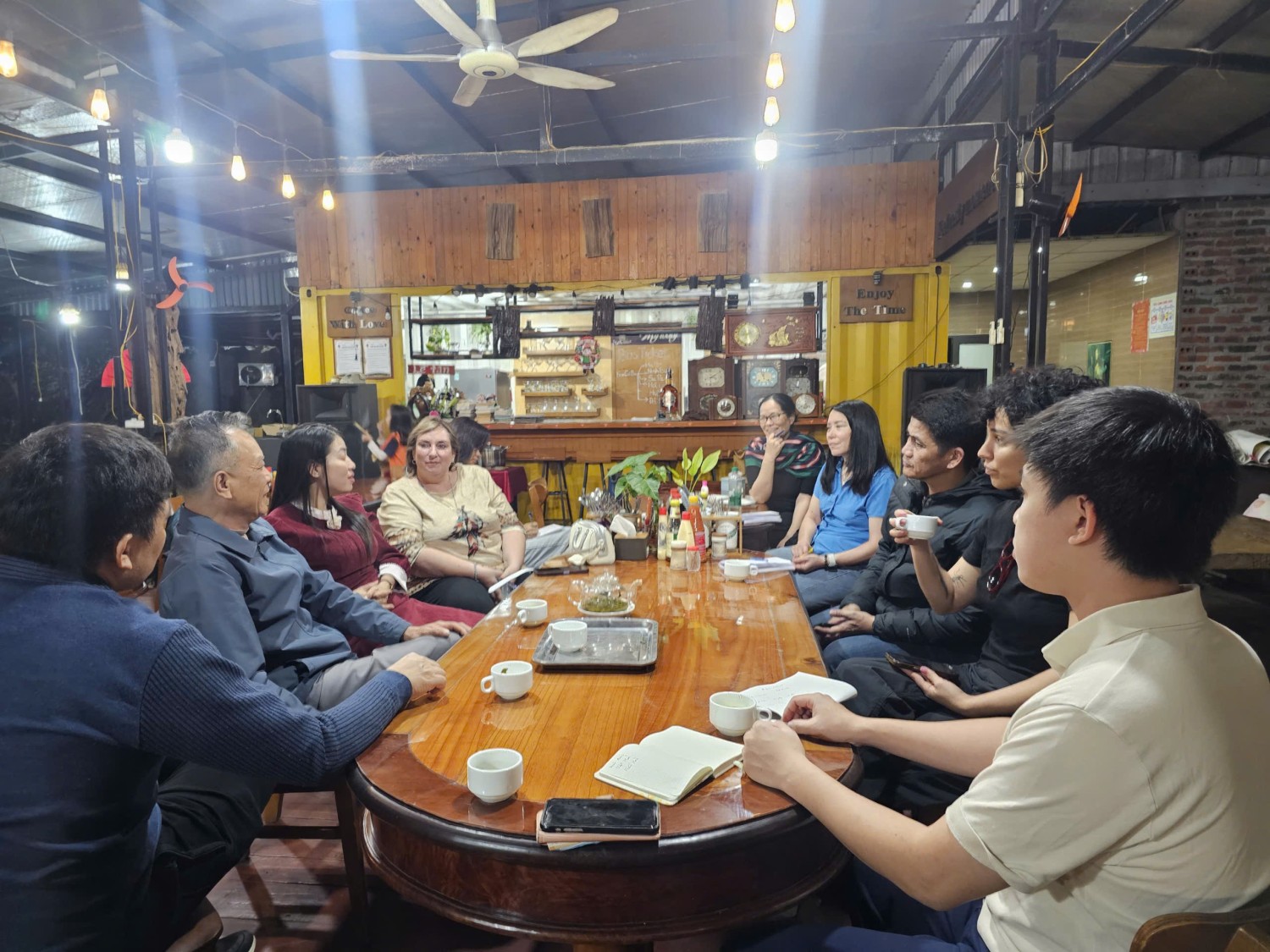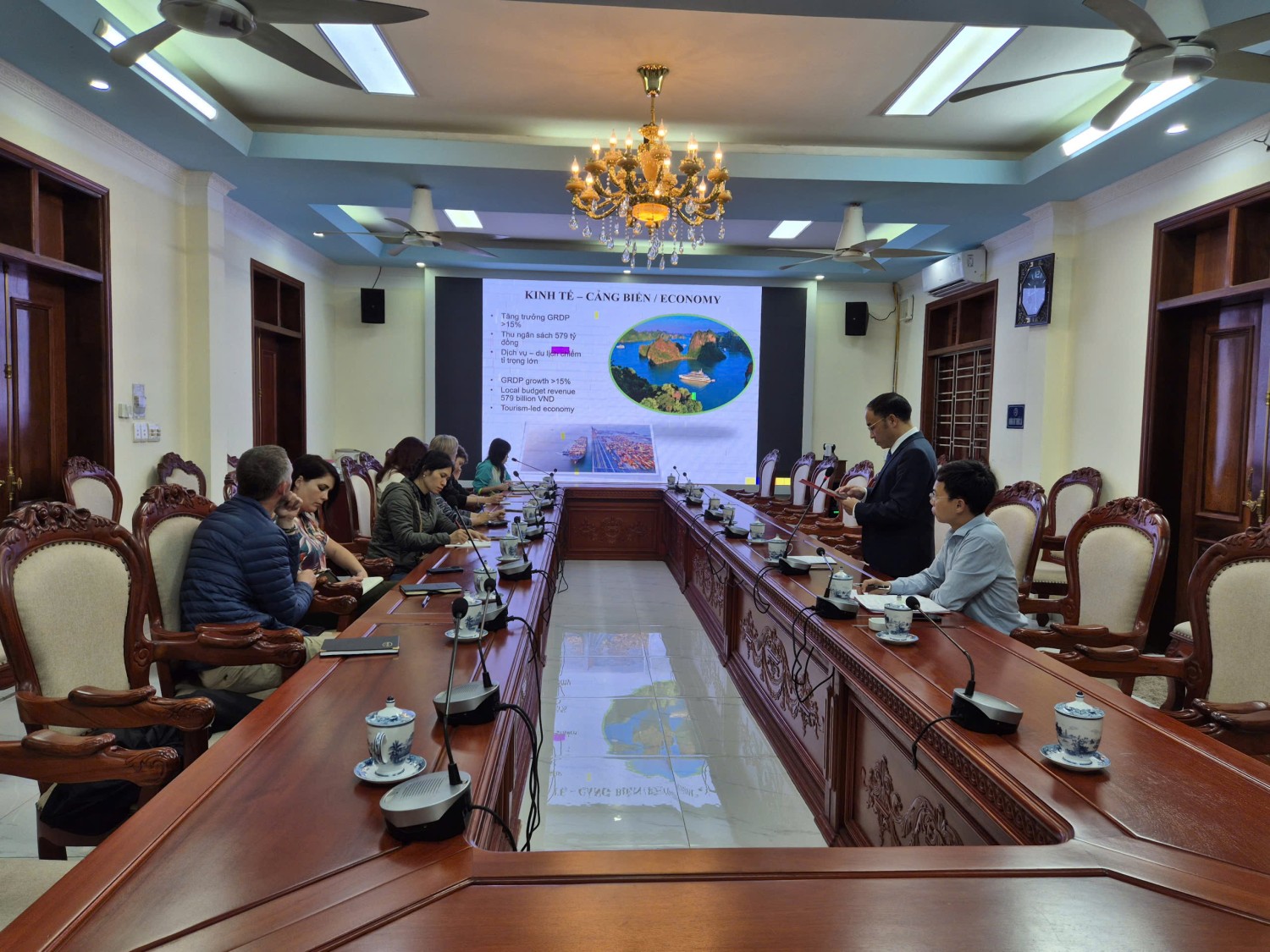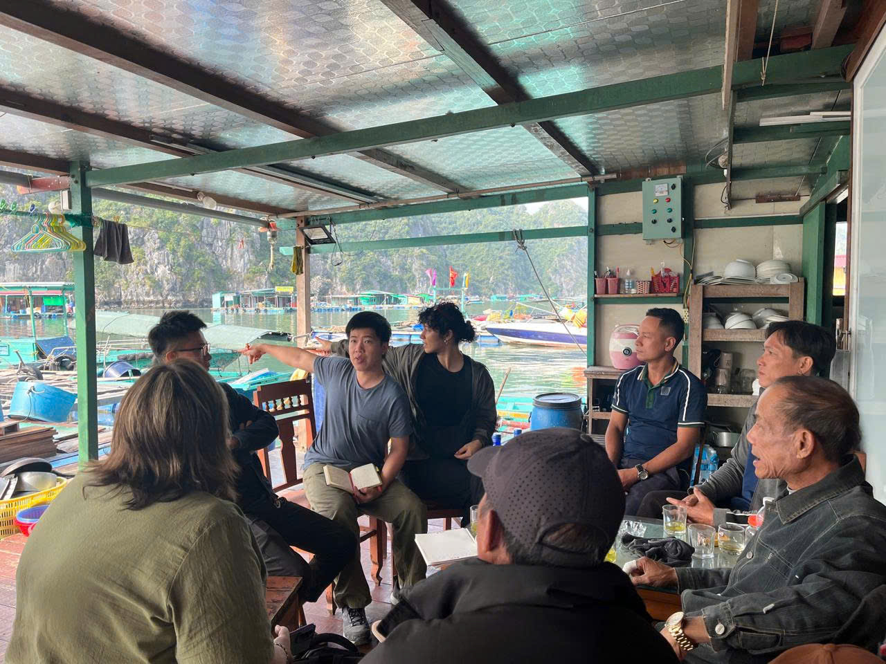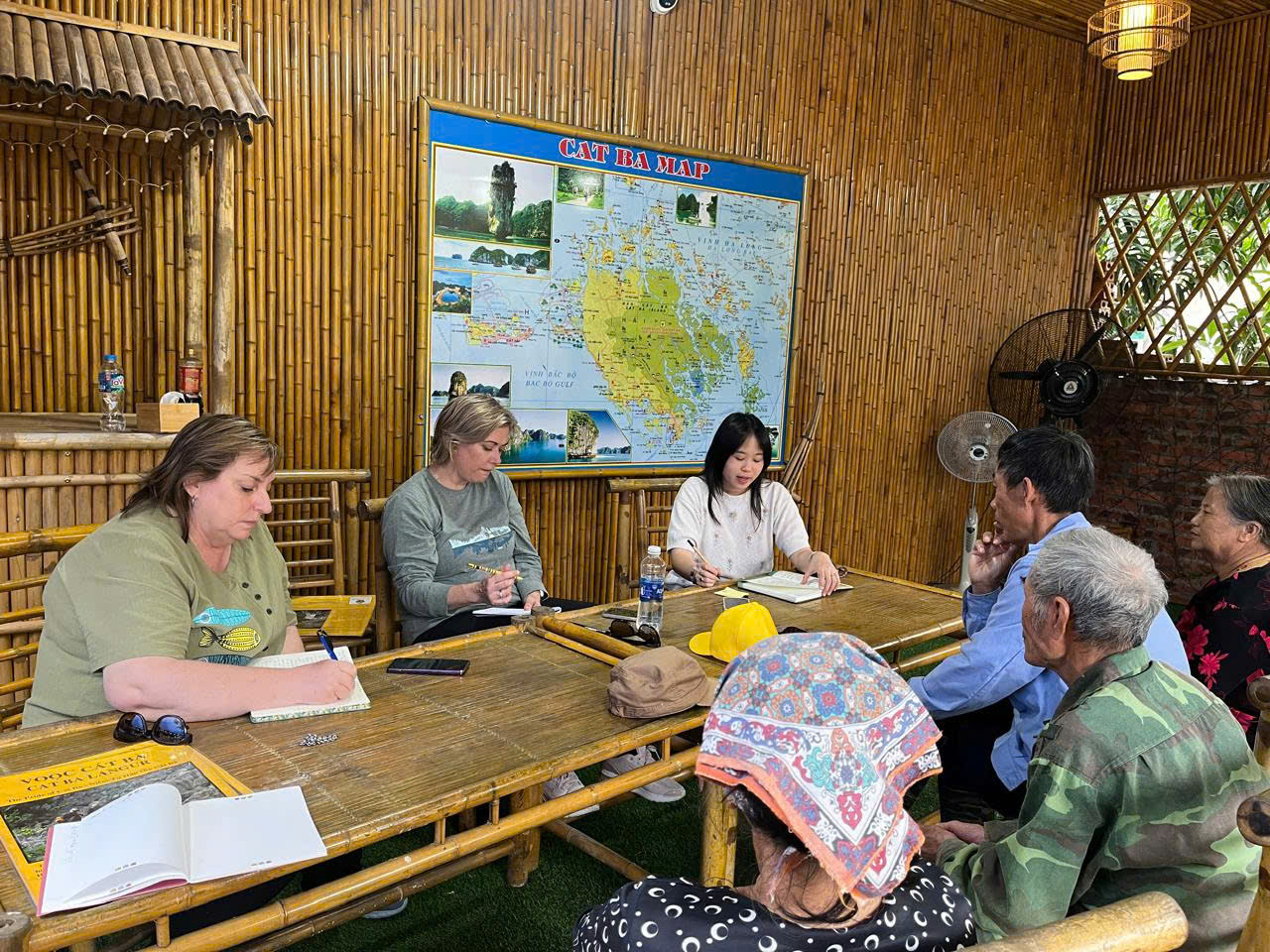 Trong bốn ngày làm việc tích cực, đoàn đã triển khai chuỗi hoạt động trao đổi chuyên môn và nghiên cứu cộng đồng nhằm tìm hiểu sâu các mô hình bảo tồn và phát triển tại địa phương. Ngay trong ngày đầu tiên, đoàn đã tìm hiểu và trao đổi với cộng đồng dân cư tại thôn Phú Cường, lắng nghe ý kiến của người dân về đời sống, sinh kế nông – ngư nghiệp và cơ hội phát triển du lịch cộng đồng trong bối cảnh biến đổi khí hậu. Sau đó, đoàn làm việc tại Văn phòng Đảng ủy – UBND Đặc khu Cát Hải, nơi đồng chí Vũ Hữu Vững – Phó Chủ tịch UBND Đặc khu – cung cấp bức tranh tổng quan về định hướng phát triển du lịch bền vững, quản lý tài nguyên và những thách thức đặt ra trong quá trình đô thị hóa biển đảo.