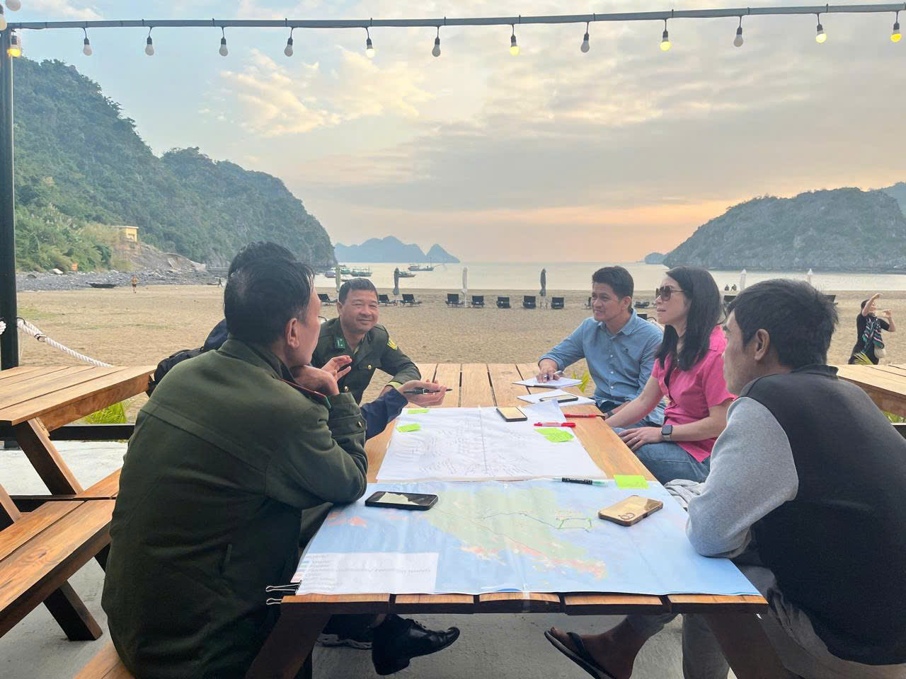 Ngày thứ hai của chương trình, đoàn chuyên gia làm việc với Ban lãnh đạo Vườn quốc gia Cát Bà, khảo sát các vùng sinh thái đặc hữu, đặc biệt là khu vực bảo tồn voọc Cát Bà. Buổi chiều, đoàn làm việc tại bãi biển Tùng Thu, thảo luận cùng người dân và lực lượng kiểm lâm về những chuyển đổi cần thiết trong phát triển du lịch sinh thái gắn với bảo tồn đa dạng sinh học. Những chia sẻ từ thực tiễn đã giúp đoàn hiểu sâu hơn bài toán cân bằng lợi ích giữa cộng đồng và thiên nhiên trong khu vực du lịch trọng điểm.